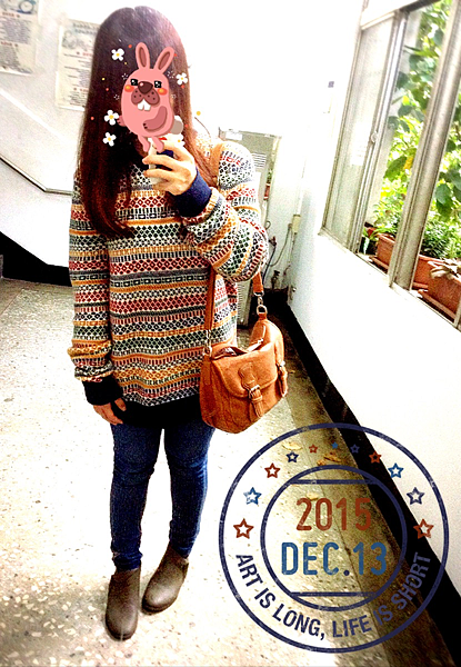 很喜歡這件毛衣的考津圖案!顏色很繽紛,但是彩度不會太高所以也很沉穩,不會很阿花的感覺:)