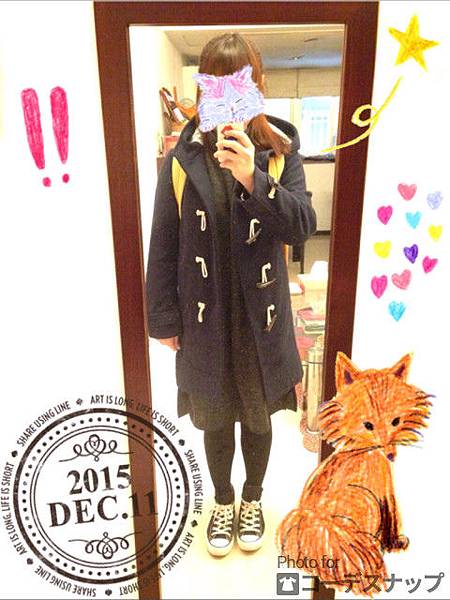深藍牛角外套是去年跟妮買的RetroGirl每年都默默買了很多他們家的衣服:"(